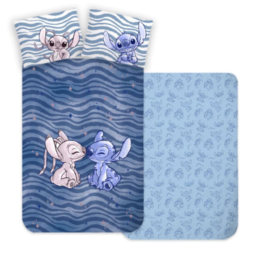 Dječja posteljina Lilo i Stitch u plavoj boji, zabavna i udobna, idealan je poklon za malenog ljubitelja ovih crtanih likova.