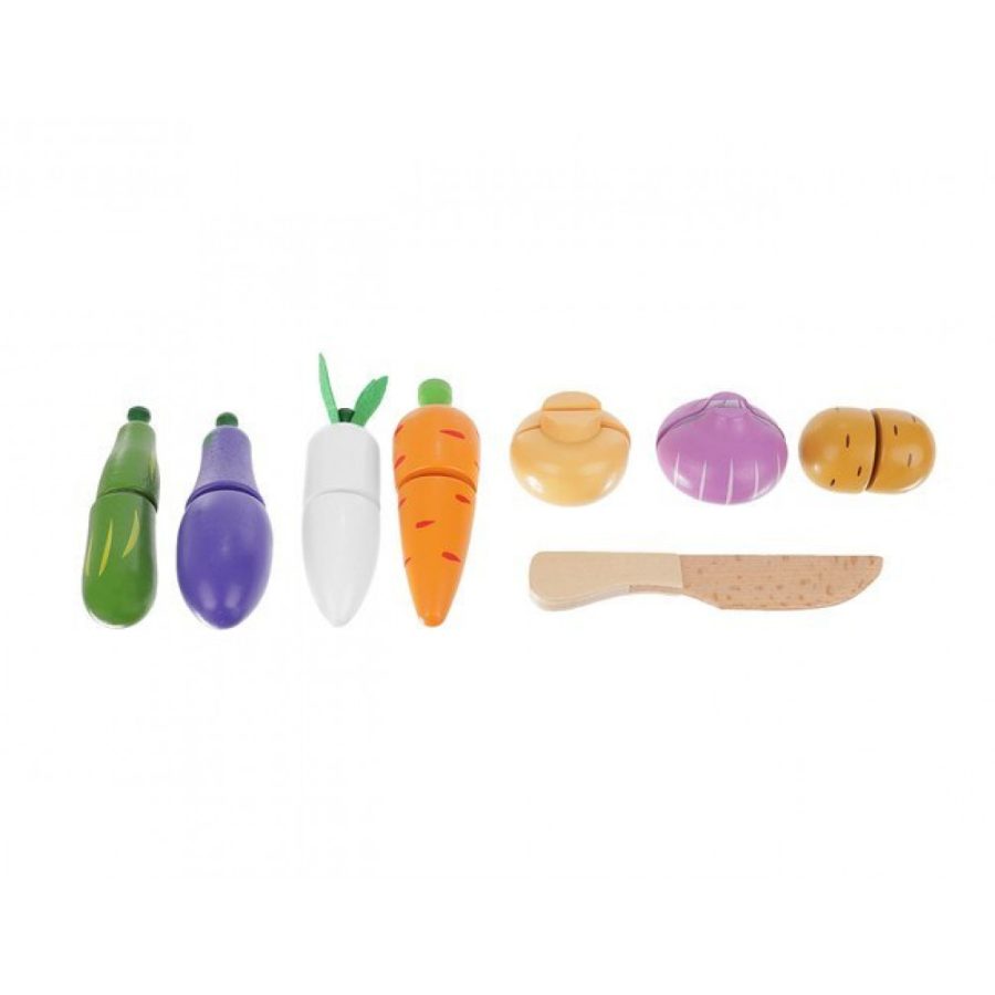 Set precizno mapiranog povrća u kutiji omogućit će zanimljivu igru u kući, trgovini ili kuhanju. Žive i sočne boje privući će djetetovu pozornost i potaknuti ga na igru. Sastoji se od: mrkve, krumpira, gljiva, luka, krastavca, patlidžana, korabice, noža i kutije.