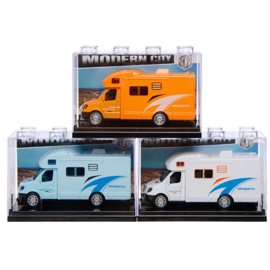 Kamper igračka s pull back funkcijom, izrađen je od metala i plastike i savršen izbor za sve ljubitelje putovanja, motornih vozila i minijaturne preciznosti. Karoserija i konstrukcija detaljno su izrađene i jamče dugotrajnu igru.