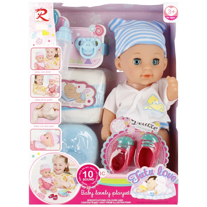 Lutka koja pije i piški 30 cm je interaktivnu lutku koja donosi mnoštvo zabave i učenja za vašu djecu! Ova lutka visoka 30 cm dolazi s kompletnim setom dodataka koji omogućavaju realističnu igru i njegu. Obučena je u slatku odjeću s kapicom i papučicama, a uključuje bočicu, dudu, pelene i tuta.