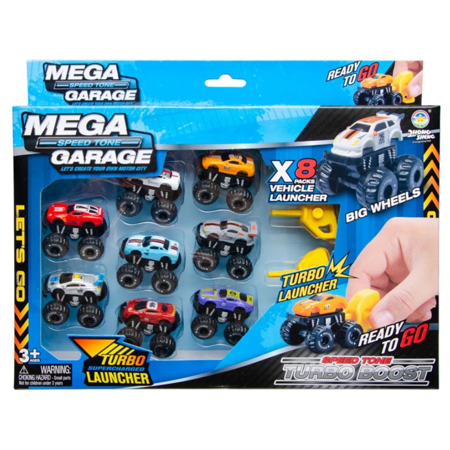 Ovaj set sadrži osam malenih automobila s velikim kotačima za brzinske utrke i dva specijalna mehanizma za pokretanje koji automobilima daju nevjerojatnu brzinu. Svaki od 8 automobila (veličine cca 4.5 x 3.5 x 3.5 cm) opremljen je velikim kotačima za stabilnost i spektakularne manevre, čineći svaku utrku nepredvidivom i napetom.